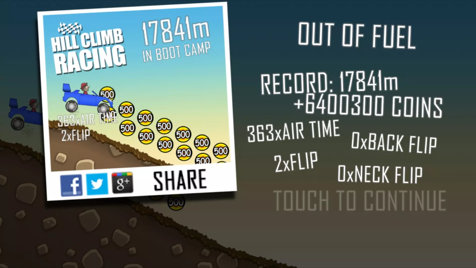 这是1.27.0版本《登山赛车》的游戏演示,展示了使用拉力赛车在田园赛道行驶的过程,最终跑出了8980m的成绩,过程中可收集金币、获取燃油补给。