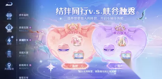 活动时间:2月11日更新后-2月28日23:59 玩家参与活动前需先选择加入【结伴同行】or【峡谷独秀】阵营。加入不同阵营,将领取不同的主题任务和奖励。 活动奖励:全新结伴同行/峡谷独秀-回城特效、结伴同行/峡谷独秀-局内称号(1年)、结伴同行/峡谷独秀-个人主页(90天)等 露娜-一生所爱返场 元宵团聚,福利不停,露娜-一生所爱限时返场,喜欢的召唤师们别错过哦,本次直售返场后,露娜-一生所爱后续将以限时抽奖的方式产出。 返场时间:2月15日更新后-2月21日23:59 返场价格:888点券 拥有皮肤还可领取皮肤专属个性动作 活动时间:2月15日更新后-2月21日23:59