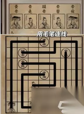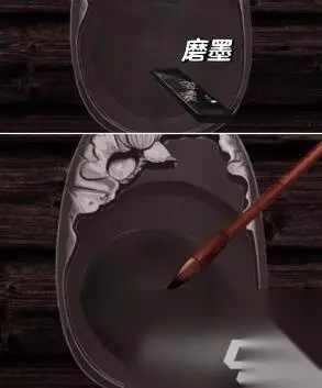 16、回到刚才的房间,将水倒入桌上的砚台,接着把墨条放到墨水里面,用毛笔蘸墨,接着点击画卷,根据卷轴当中的线索用毛笔进行连线,获得八卦图。