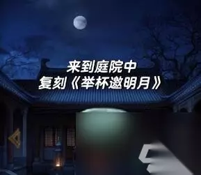 19、接着回到厨房,点击柜子下方,利用床上和灶火的线索解锁,获得酒杯和举杯邀明月的提示。