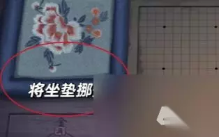 2、接着点击棋盘上的黑棋子,接着点击坐垫,用坐榻获得线索打开机关,获得扣环和纸页。