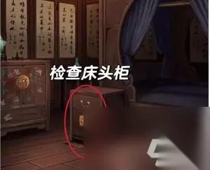 18、进入左边的卧室,点击床头柜获得箱子,根据书房卷轴线索打开箱子,获得扇面和床上的线索。