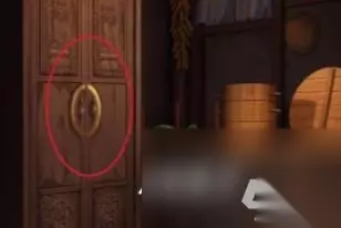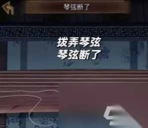 3、接着点击柜子,把扣环装在中间空缺的位置,按照纸页上的线索依次点击扣环,获得琴弦。