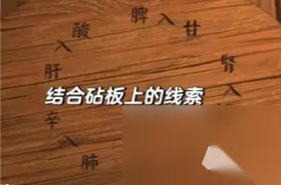 5、进入厨房,选择案板获得线索和菜刀。