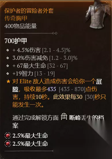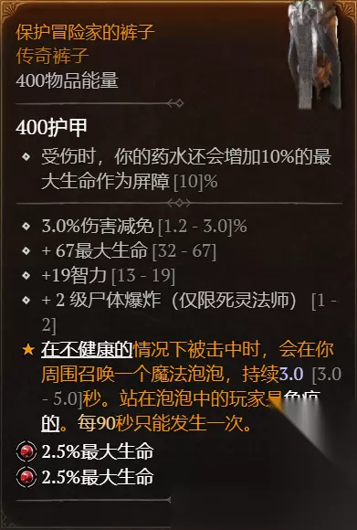 裤子: 等级、最大生命、智力、减伤(邪爆)