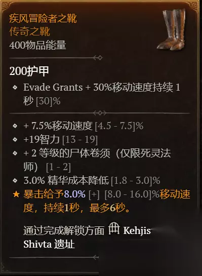 靴子:移动速度,等级,强化一代(亡骸卷须)