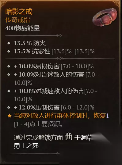 戒指:伤害,对近身敌人的伤害,对CC'd敌人的伤害,超强伤害,易伤伤害。