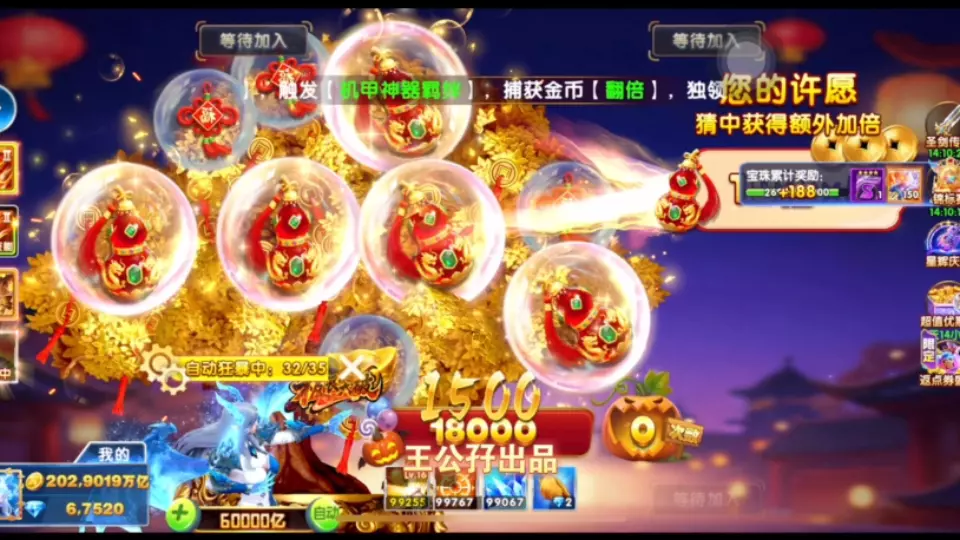 这是捕鱼游戏的精彩对局分享,开局触发吞黑8、小偷机制收获奖励,最终打出冥王、鱼跃龙门双杀,实现双觉醒、双机甲,还获得海量金币奖励,游戏体验拉满。
