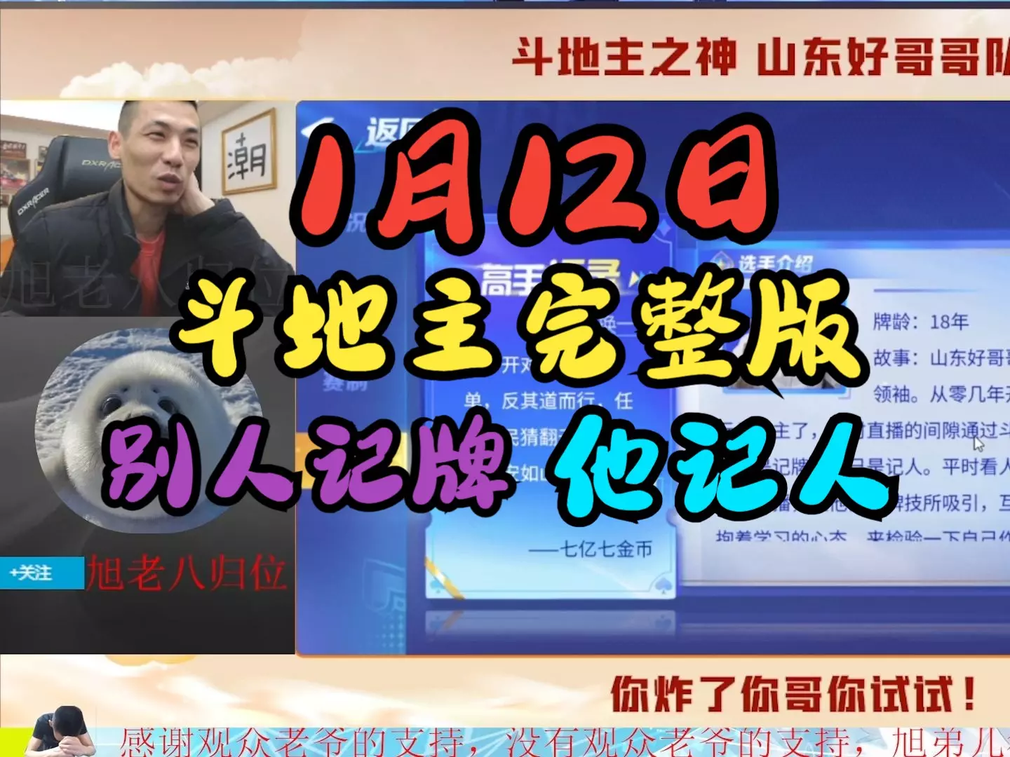 这是一则搞笑内容,博主猪客剪辑了主播宝哥时长一小时的斗地主视频,供网友当作春晚内容观看,视频里呈现了宝哥玩斗地主时的趣味瞬间。
