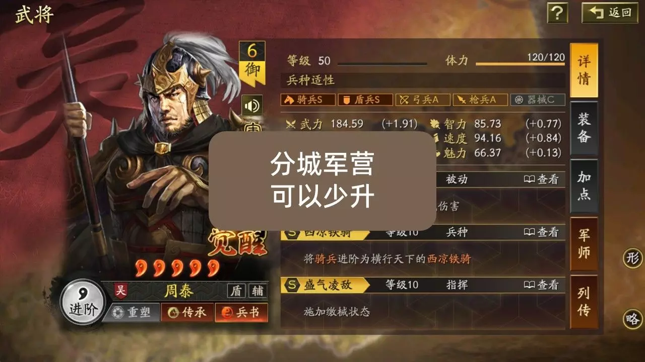 碰瓷队伍放在军营等级低的分城,奇略触发难度更低。但是,好像最大的问题是等能这么玩的时候,好像有点晚了
