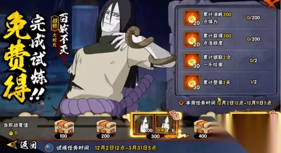 百战大蛇丸作为一位异装忍者,其技能机制进行了优化调整。相较于原版角色,新版在起手和反手能力方面均有显著提升。想要熟练掌握这个角色,必须注重走位技巧,因其技能冷却时间较长,若缺乏走位意识极易被对手抓住破绽。