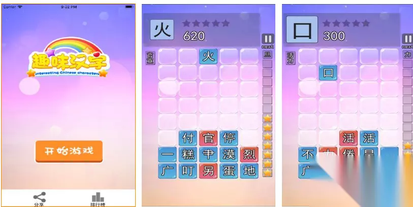 这款汉字主题的休闲游戏融合了下落式的玩法,将下落的偏旁部首组合起来就能进行消除了,玩法跟俄罗斯方块类似但融合了中式元素,各种文字和偏旁部首交相呼应的画面让人印象深刻,还可以联网了解排行榜上好友的闯关效率,美术表现十分简约助力大家沉浸在汉字世界中,消除与解谜模式融合的休闲体验十分有趣。 高速下载 普通下载 3、《汉字十八变》