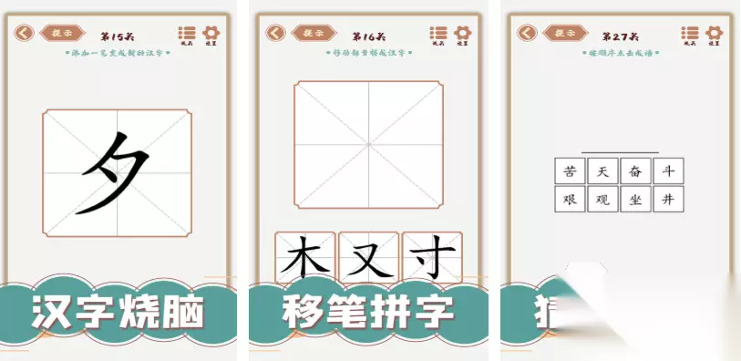汉字十八变是款拥有多样关卡和汉字谜题的解谜作品,玩家要沉着冷静思考关卡的闯关流程,寓教于乐的游戏体验让汉字爱好者乐在其中,轻松学习汉字的操作设定也提升了大家智商,还有加一笔变新字的特殊解谜玩法可以挑战,每个模式关卡都致力于展现出汉字方面的魅力,简约的美术刻画跟数量极多的关卡也是点睛之笔。 手机扫码下载233乐园APP预约 预约订阅最新动态 优先233乐园APP下载 4、《汉字多变化》