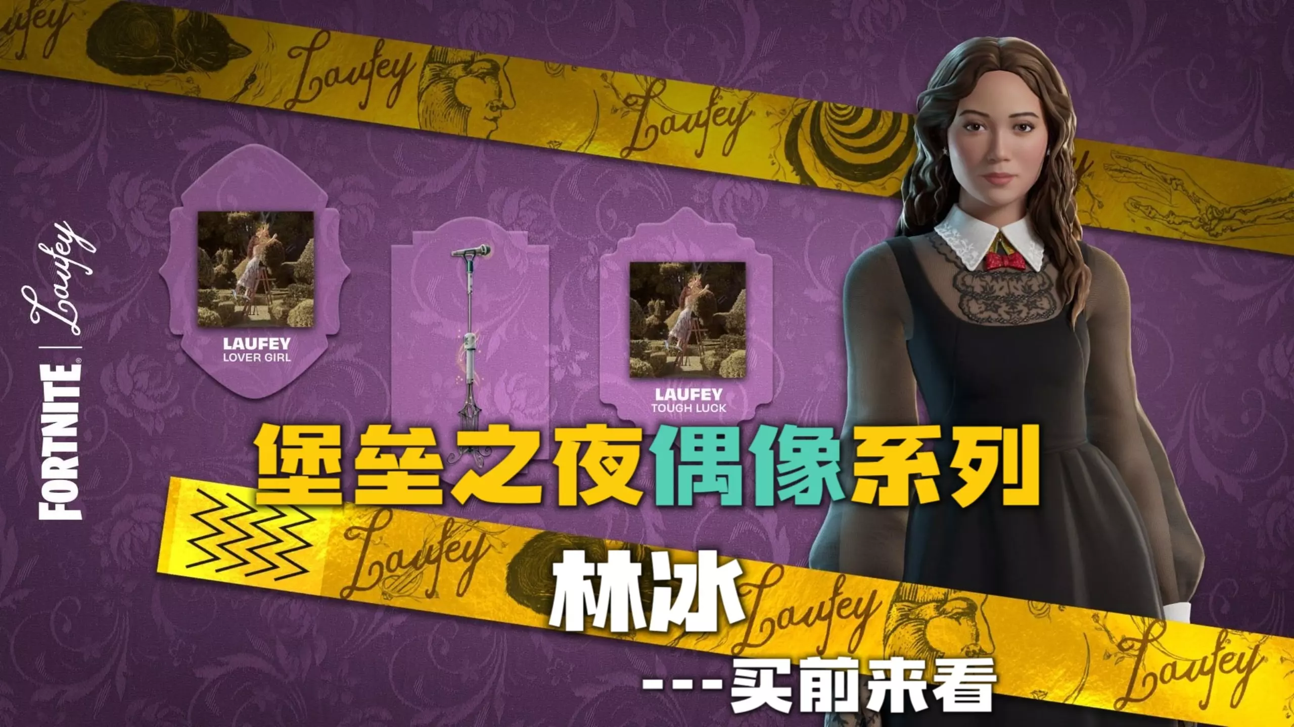 这篇帖子分享了来自网络的相关内容,宣布林冰加入EPIC旗下的堡垒之夜,还将在堡垒之夜第14赛季的laufey音乐节中登场,呈现相关演出内容。