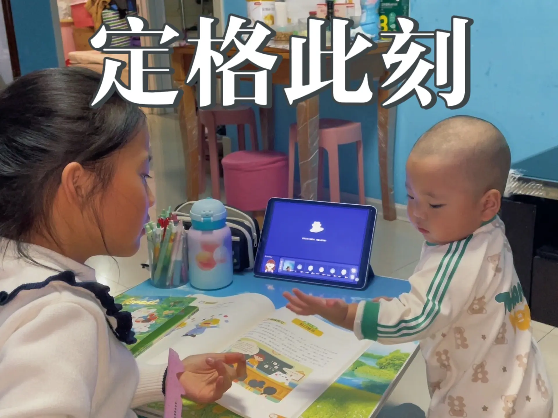这则记录展现了六年级哥哥和二年级妹妹上学前的日常,有做饭备餐的忙碌,也有兄妹间的趣味互动,充满温馨的家庭氛围。