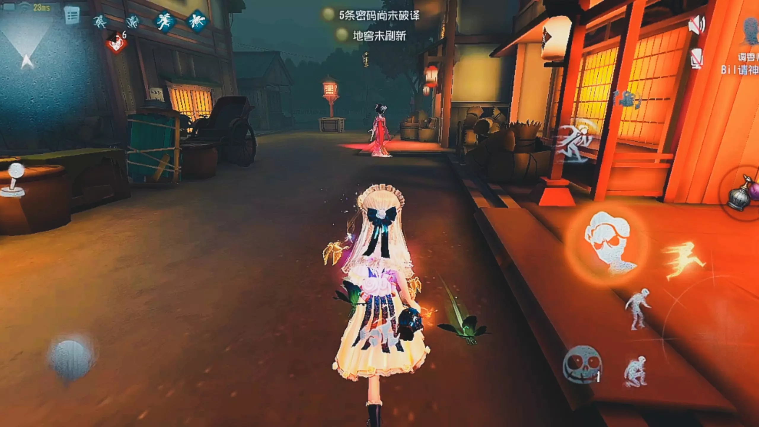 这是第五人格的观战内容,展示了在永眠镇地图中,S牌小女孩运用翻板加速、断飞等技巧溜监管者红蝶的操作,期间佣兵还成功救人并为小女孩创造了二溜空间。