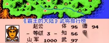 在霸王的大陆这款游戏中,武将的能力是衡量其战斗力和战略价值的关键。武将的能力通过体力(体)、武力(武)、智力(知)和德行(德)四个维度进行衡量,每个武将在这四个维度上的数值总和,决定了其在游戏中的强弱排名。以下是对游戏中武将排名数值的详细解析,帮助玩家更好地了解每位武将的特点和优势。 一、t0档次(最强)武将 1. 司马懿 - 体力:69 - 武力:64 - 智力:98 - 德行:90 - 合计:321点 建议重点培养其智力和德行,使其在内政和战斗中都能发挥最大作用。 2. 刘备 - 体力:78 - 武力:71 - 智力:68 - 德行:99 - 合计:313点