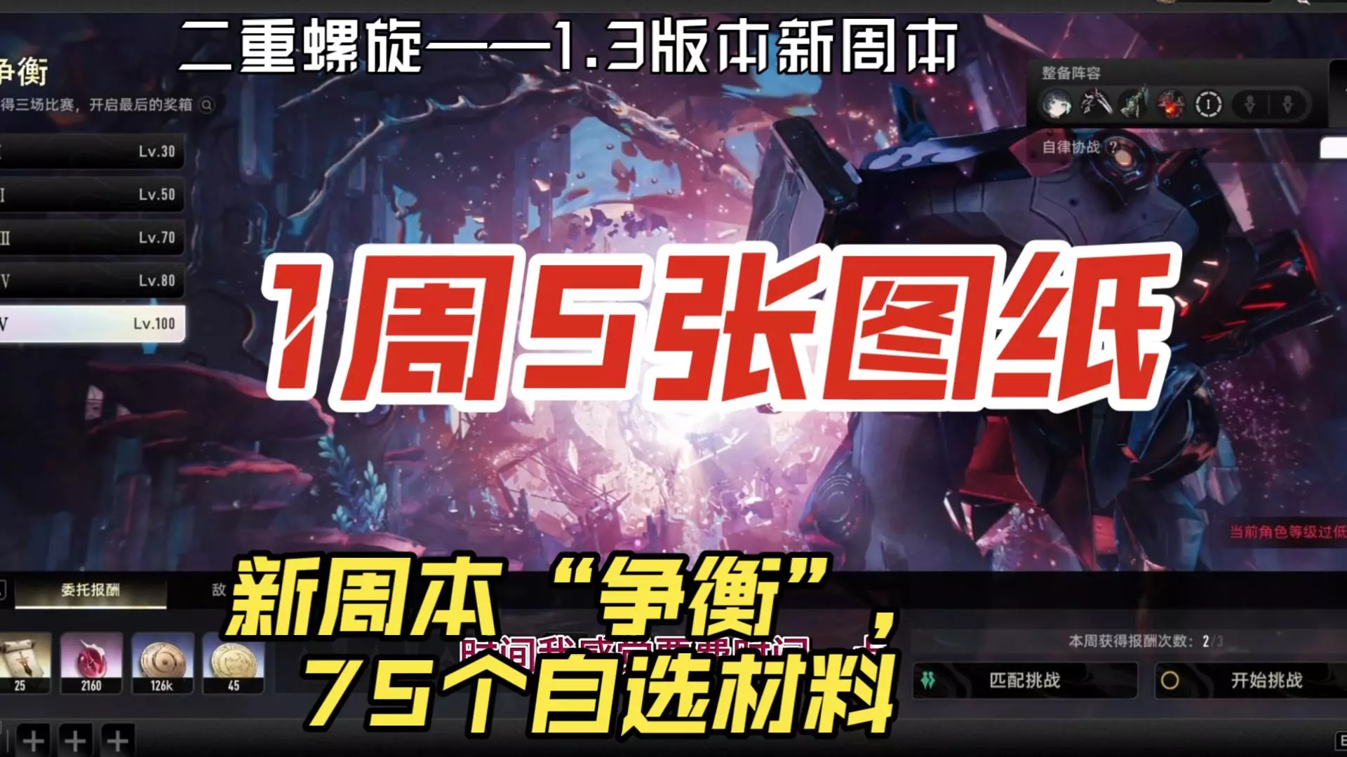 这是《二重螺旋》1.3版本新周本争衡的全攻略,涵盖速通流程实机演示、推荐用煜明这类角色的配队建议,还有周本能获取的兑换道具等奖励解析,助力玩家通关拿奖。
