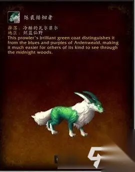 烁裘徘徊者 掉落该坐骑的稀有“冷酷的瓦尔菲尔”在30.6,55.0,玩家需要点击附近30.4,55.5地面上的闪光的心能之种(光效明显,玩家很容易看到)来消除该稀有身上的无敌BUFF,游戏中移除效果持续5分钟,种子则是4分钟左右刷新一次,建议玩家前期还是组队前往,击杀后所有小队的成员都可以获得坐骑。 闪雾奔行者 游戏中该坐骑获取比较麻烦,玩家需要在坐标26.3,59.0处击败控制着巡林者的精英希兹格尔,而玩家想要找到这个稀有精英必须走过纱雾迷结的迷宫这片区域,如果玩家不按照迷宫的规则来走的话,是无法看到该稀有的。 以下是迷宫的走法: 1、玩家首先去往31.5,53.0处的收集迷宫的线索,线索就悬挂在书上的卷轴上面; 2、然后前往31.0,51.5开始迷宫挑战; 3、29.6,55.7处 第一个交叉路口 左/东南方向; 4、30.0,57.5 第二个交叉口 右 / 西南方向; 5、29.5,57.9 第三个交叉口 左 /南方向; 6、29.3,59.1 第四个交叉口 右/ 西北方向; 7、28.8,58.7 第五个交叉口 前进/西北方向; 8、27.5,57.8 第六个交叉口 左/西,然后就可以进入最终交战区域,击败精英之后就可以点击旁边不断地奔跑的巡林者获得坐骑了。