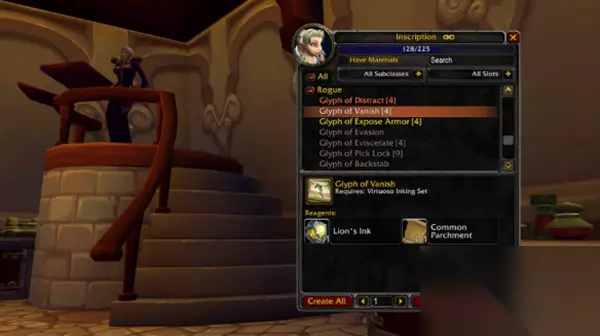 2. 通过铭文专业技能研究 这是解锁绝大多数雕文,尤其是小型雕文的核心方式。 每日研究:铭文师可以使用专业技能“小型雕文研究”,消耗1份月光墨水和2张轻羊皮纸,进行一次研究。该技能有20小时的冷却时间,每次使用后有很高概率随机学会一个新的小型雕文配方。 持续研究:几乎每次进行研究都能学会新的雕文,这是铭文师拓展其雕文收藏规模的主要方法。 3. 购买已制作的雕文 这是非铭文专业玩家获取雕文最主要、最便捷的途径。