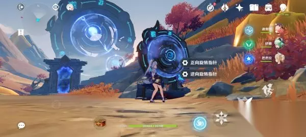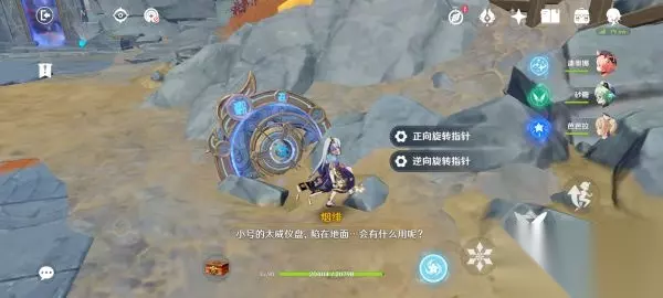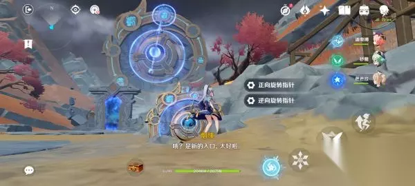 走到太威仪盘前,砍掉旁边的红叶子小树(必须砍,不然一会就长成大树,指针转不动)。