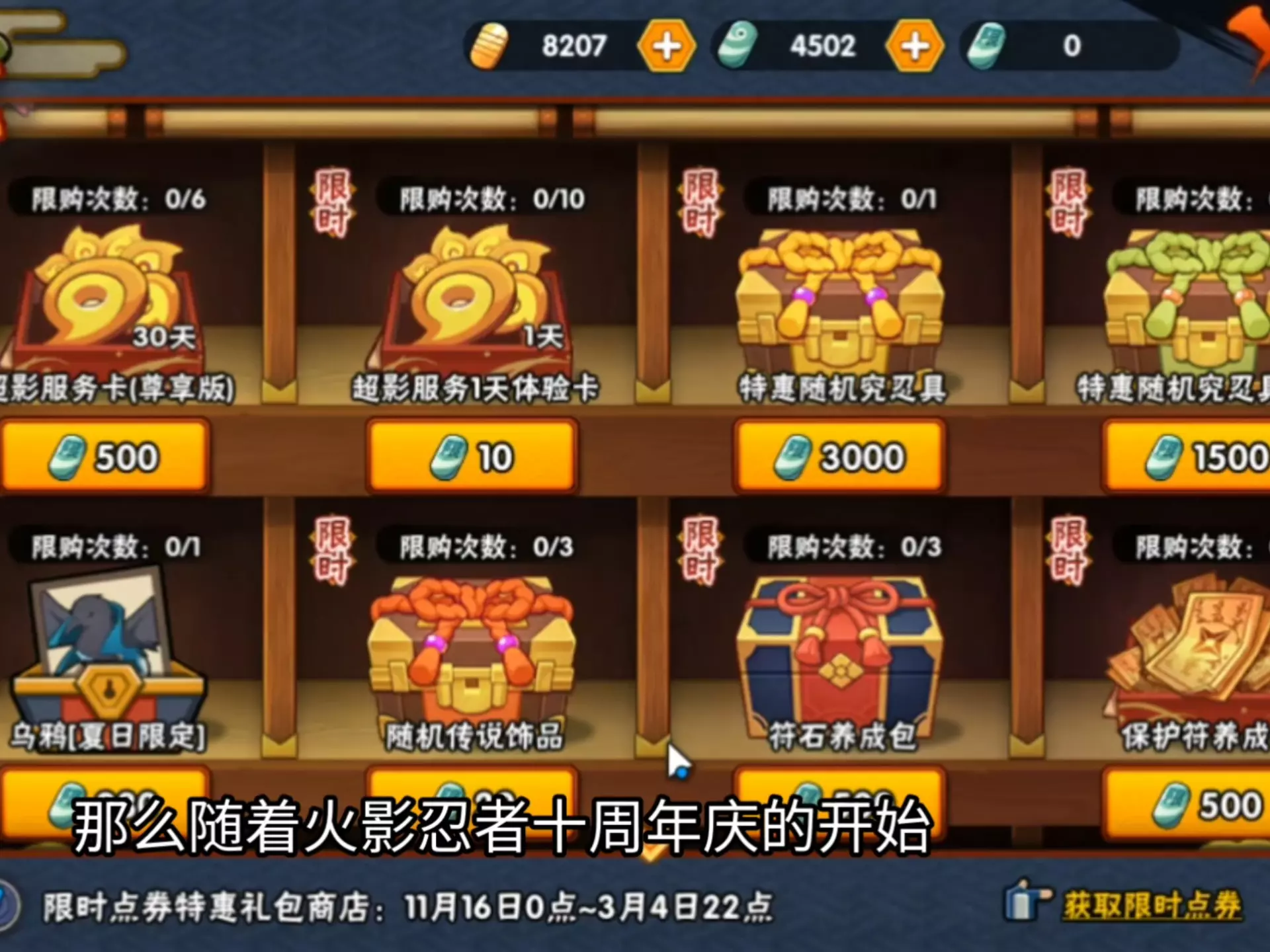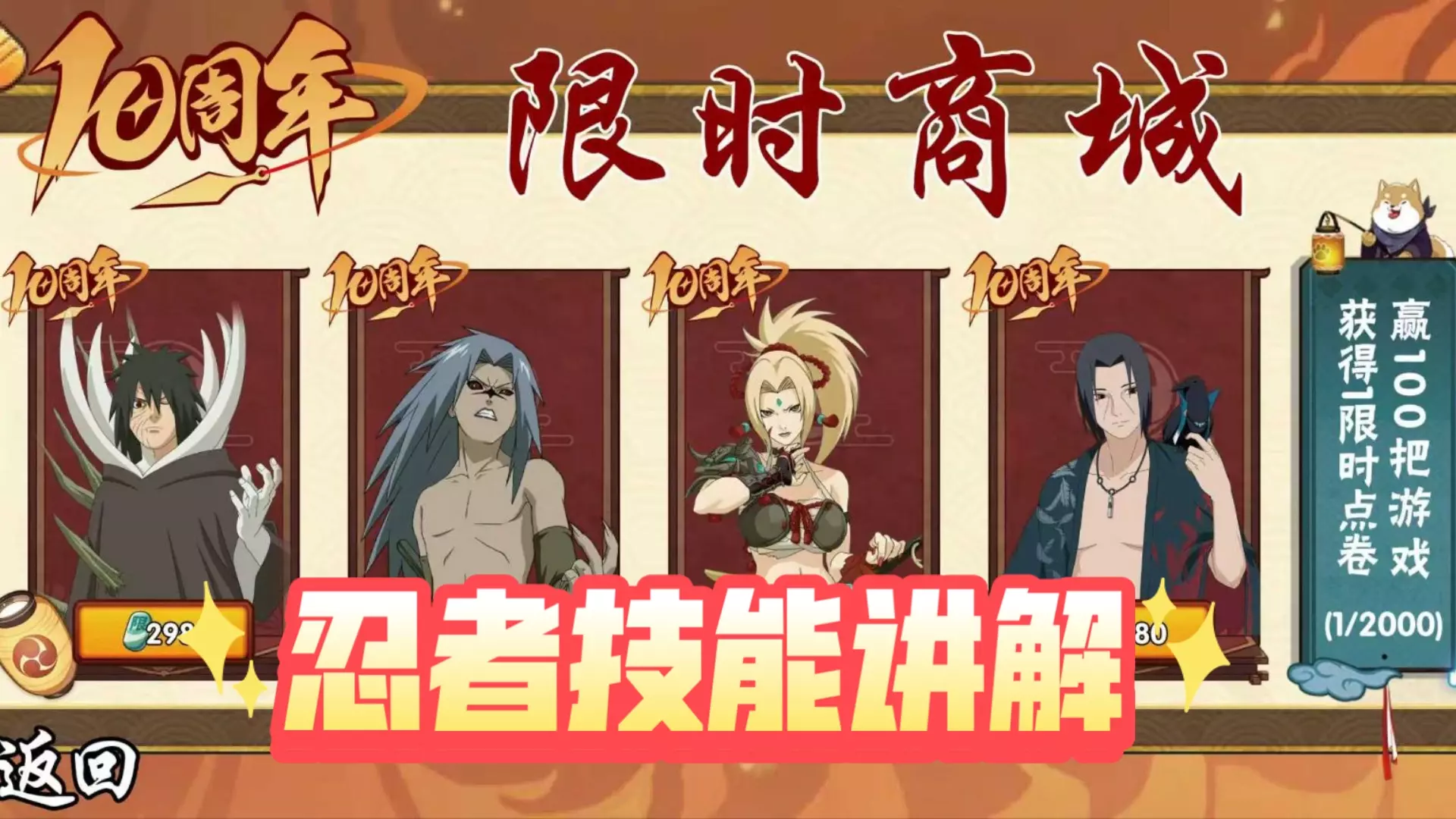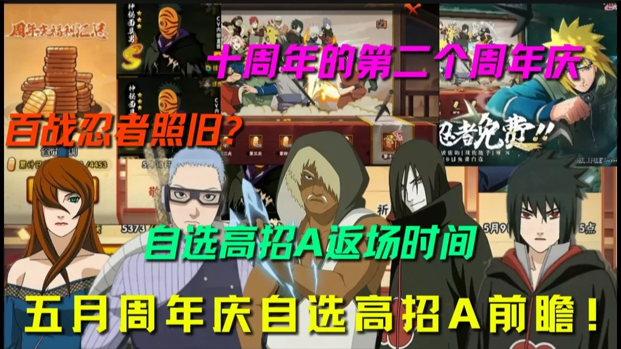 这是火影忍者手游的十周年情报,11月16日开启3000限时点券免费领取活动,可在限时点券商店兑换A忍等福利,还带来了A忍兑换推荐,比如宇智波佐助[疾风传咒印]、宇智波带土[暴怒]等忍者。