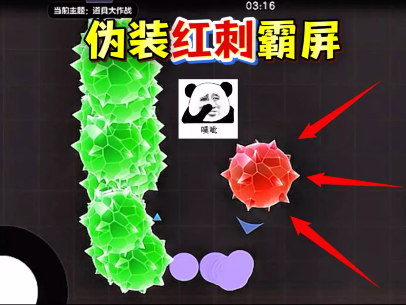 这是《球球大作战》道具大作战主题下的《伪装4.0》游戏内容,展示了玩家在游戏里面临危机,发出“我能活吗”的疑问,还差点暴露伪装,紧张应对的游戏过程。