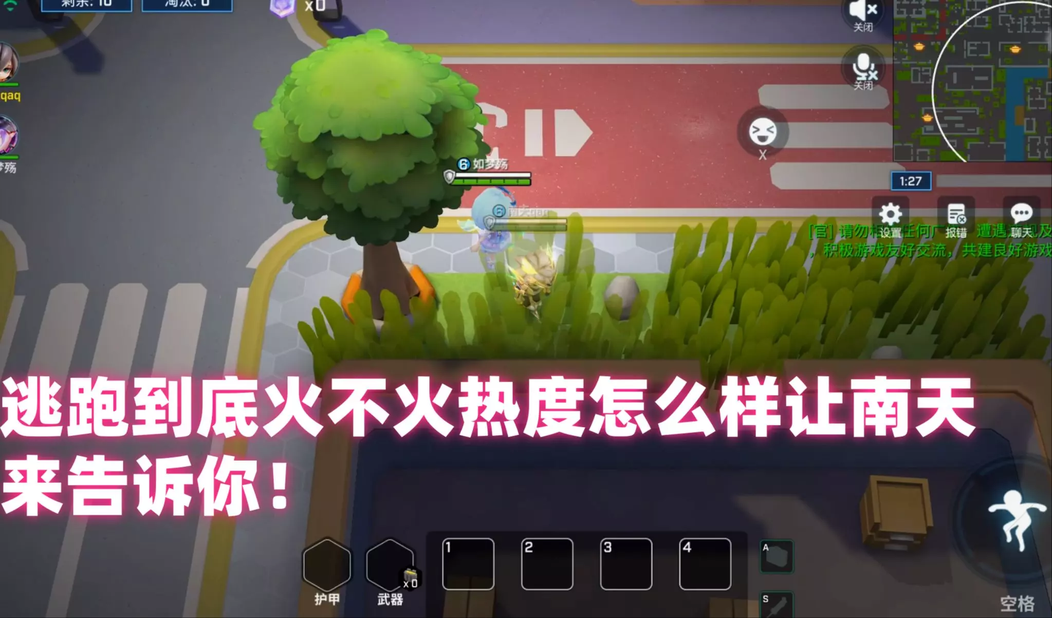 这是《逃跑吧!少年》的电子竞技对局,玩家面临两名队友倒地、一名队友挂机的不利局面,在对局中尝试行动,询问大家自己能否完成翻盘。