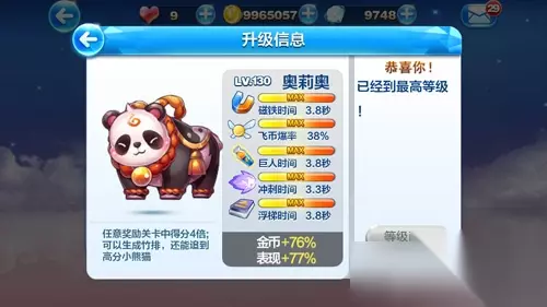 天天酷跑小丑库卡 酷跑增益:飞星得分加成350% 非多人战模式:冲刺结束后会掉落手中的高分瓶子,还能将金币变成小丑道具 多人战模式:吃到小丑道具和瓶子就能带来能量值 总结 这里我们可以看出新的坐骑只是暂时看起来很好,不就就会过时,还是老的坐骑比较好。大黄鸭看起来不错,用起来更是Good,老的看起来都像是新坐骑,所以大黄鸭好。