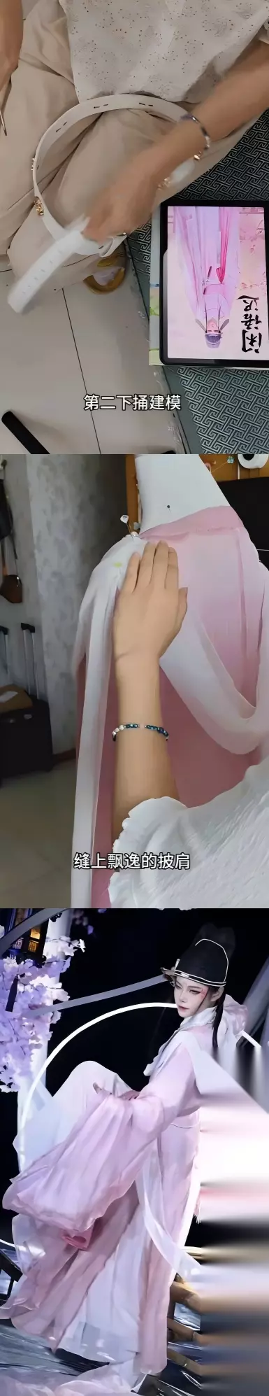 图片来自 少侠@萧玄清 你是说,少侠亲自动手完成了一整套男款时装·闲语迟的制作吗,甚至还有文艺感与氛围感都超绝的拍摄道具装置?簪花赏画时,裙袂扬起!不多说了,手作真神已经降临!