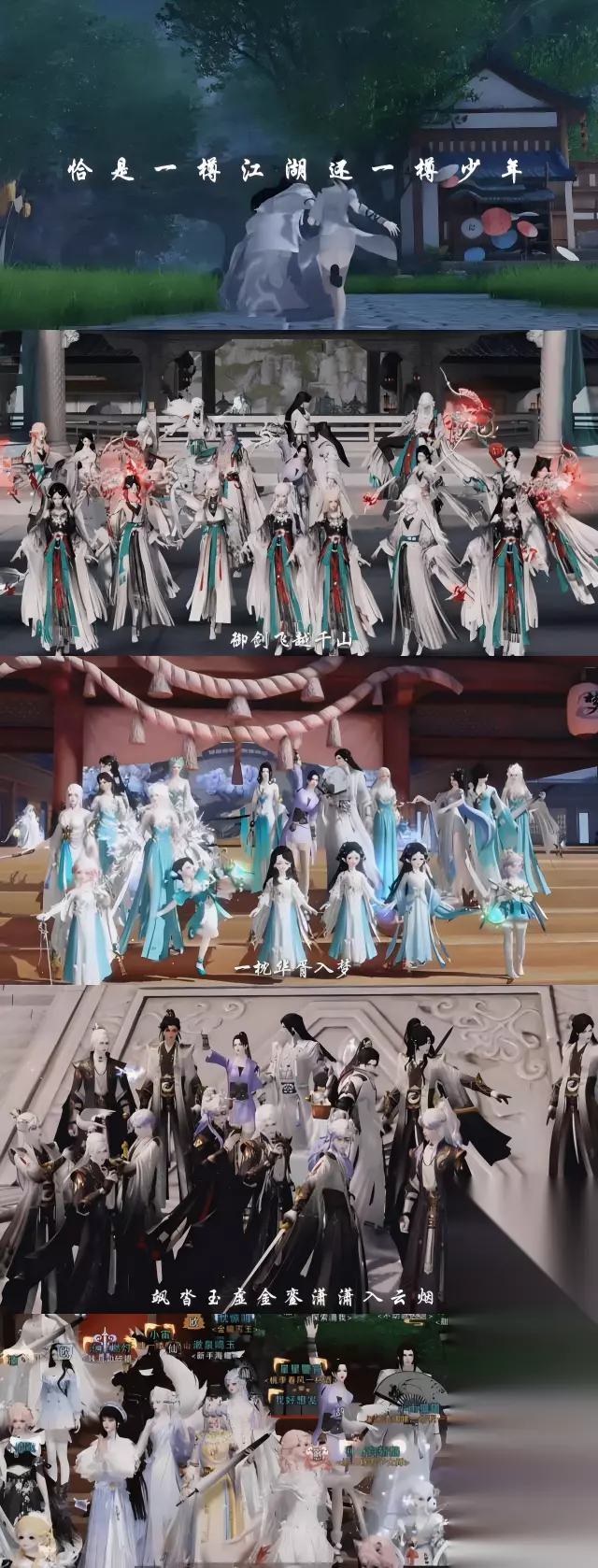 图片来自 少侠@冰糖 门派集合啦!伴着少侠们烂熟于心的音调,各个门派的侠影跃然眼前。 不管加入哪个门派, 那个当初带我们进入江湖的清崖大哥始终相伴,一起来3,2,1合个影吧!