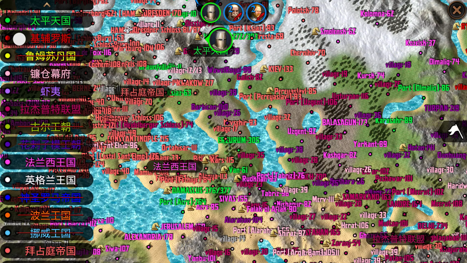(原本和英格兰打的好好的,拜占庭以“对外外交方式太过激进”为由横插一脚,我就一边和英格兰打,一边和他打,其他国看见了就不干了,也是纷纷宣战。)