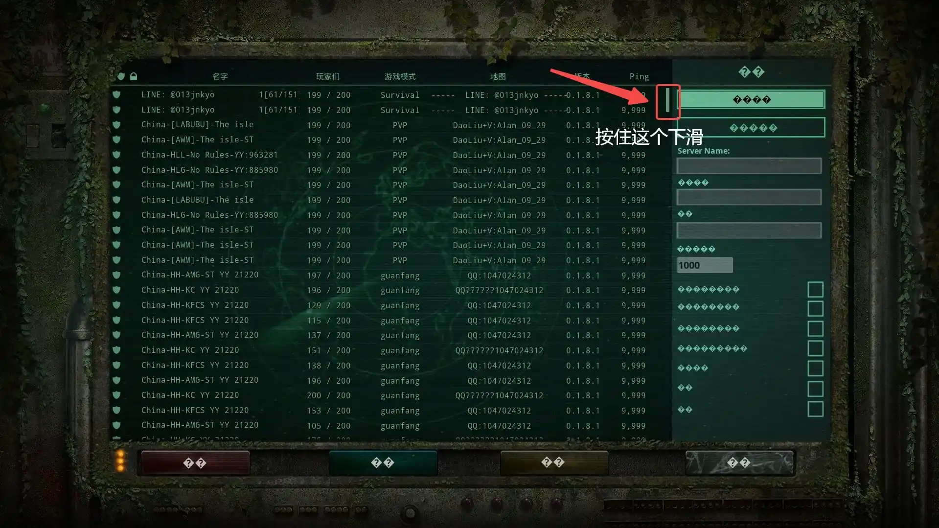 部分服主可能针对账号或者网络做了限制,故意设置导致服务器无法正常连接,可以把鼠标拖动到服务器列表右侧长按下拉,选择其他不同名称的服务器游玩。