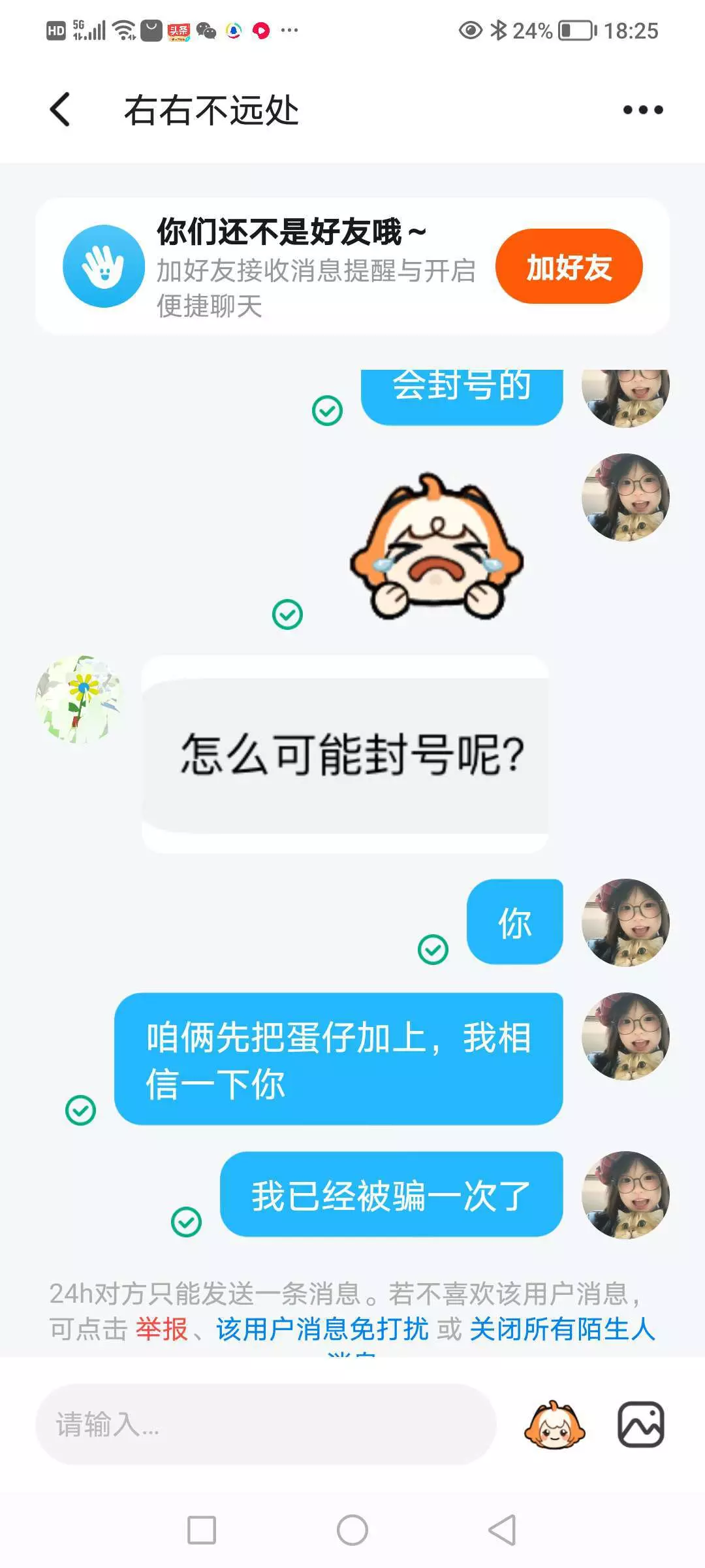 这个人咱们当心受骗哈,一说到加好友,他就把我给拉黑了,大家不要相信她(›´ω`‹)什么送皮肤?你到时候点进去,它直接给你封号,虽然我知道,所以就没点,让他必须加我好友,直接破防了他