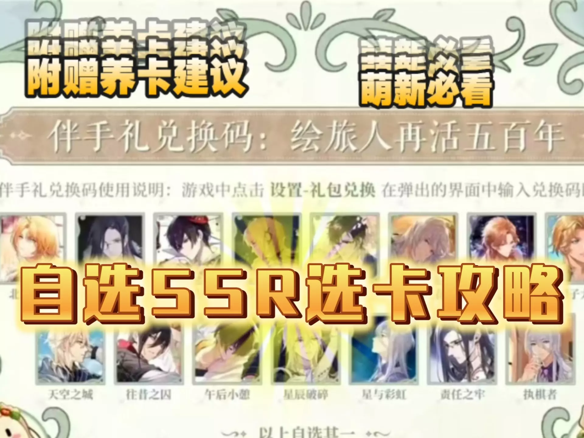 本篇非梯度榜,只面向新人小画家,主要涉及开服至三周年活动的SSR画灵,篇幅较长已按男主分类方便大家查找,正文2分42秒开始,养卡一览表空降52分09秒,绘卷指南…