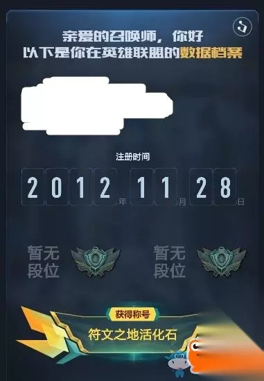 在上面我们可以看到自己LOL账号的注册时间、最早段位以及最高段位。