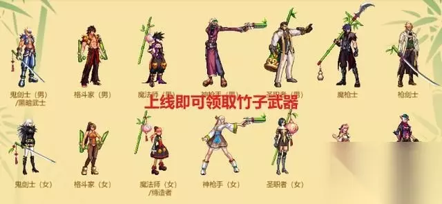 【2】竹子武器:竹子武器装扮,每个职业设计不同,萝卜青菜各有所爱,个别职业挺好看的,比如暗夜使者、魔法师、圣职者等等。