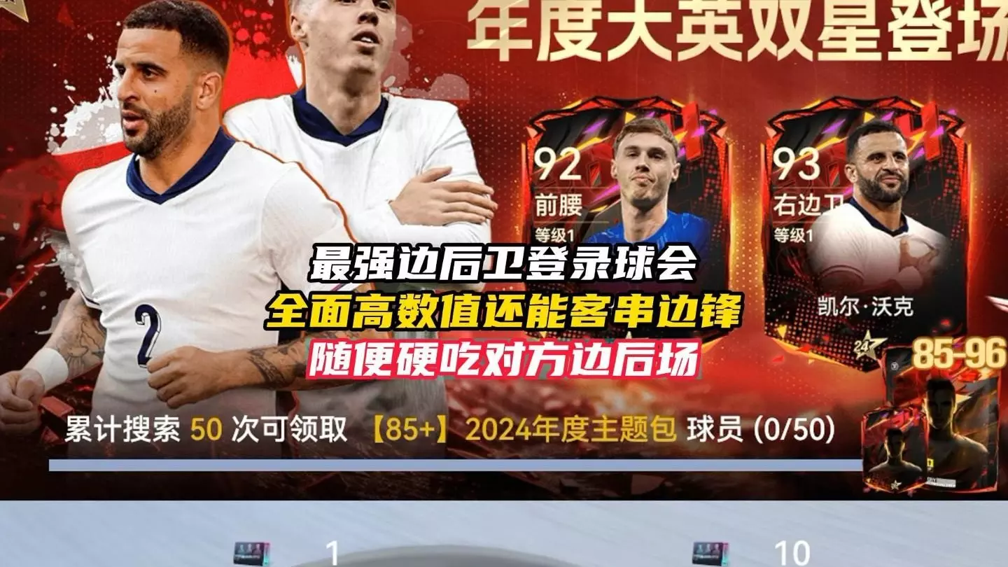 兄弟们,球会今天上线大英双星卡池!里面的凯尔沃克实在是太强了!盘带 速度 身体素质和防守能力全是高数值!既能强力防守后场,还能添加特殊战术让他成为边锋!