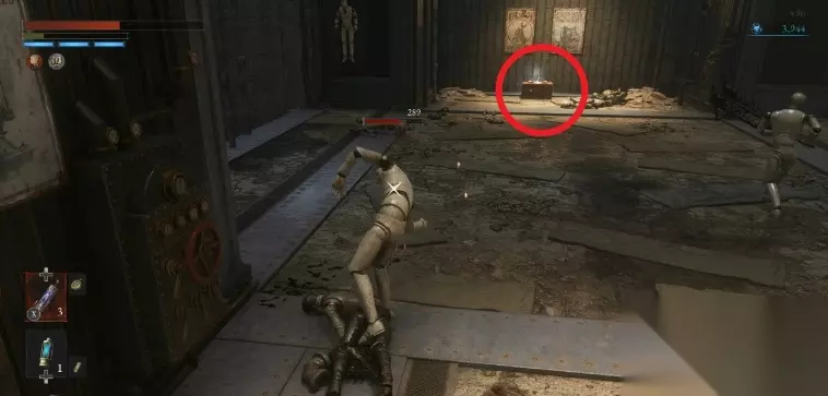 第三章——Stargazer在车间联合会入口处。上楼梯后,左边的房间进去了。盒子后面有一个跳下来的洞。跳下后,打败两个娃娃,打开旁边的盒子。 5、火斧