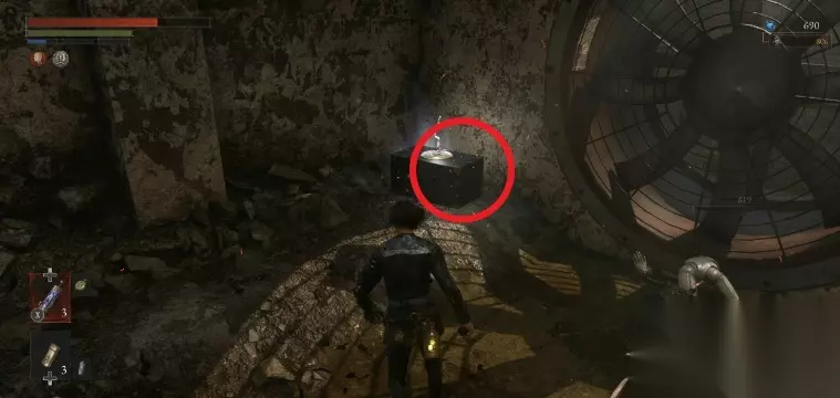 第二章——极乐大道入口,一个楼梯的角落,一只狗和两个敌人,被击败后,可以得到尽头的宝箱。 四、防具转换器 1、工坊联合会标准绝缘转换器