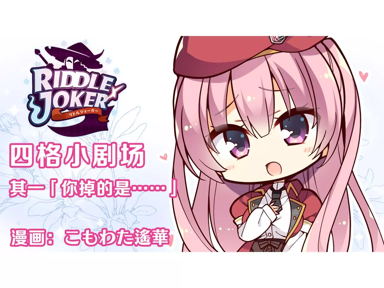 标题:『RIDDLE JOKER』四格漫画Vol.1「你掉的是……」 简介:『RIDDLE JOKER』四格漫画第一弹 漫画作者:こもわた遙華 原作:yuzus…
