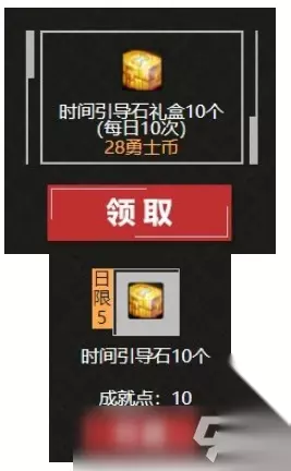 其他 1.心悦俱乐部 推荐程度:中。 充值返利可用28勇士币交换10个时间引导石,荣耀花园可用10成就点交换10个时间引导石。 勇士币需要消费,一般换装备提升礼盒更划算一点,成就点麻烦一点需要每天收菜了。