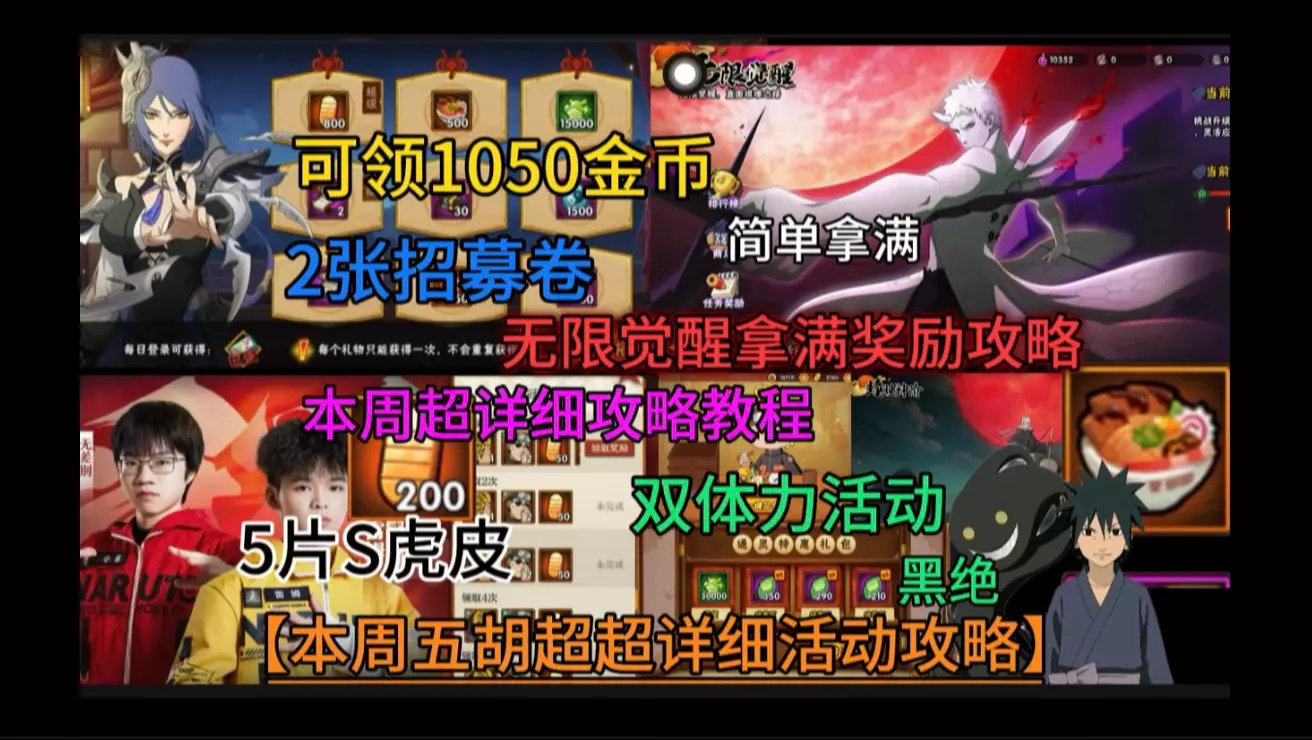 这是《火影忍者》本周活动解析,包含双体力活动,月卡分7天领给药草,推荐选幸运扭蛋第三个、必买商城300礼包,粉尘活动第一轮性价比更高,可参与神器特惠,还需组织成员和学员参与组织踏春季活动。