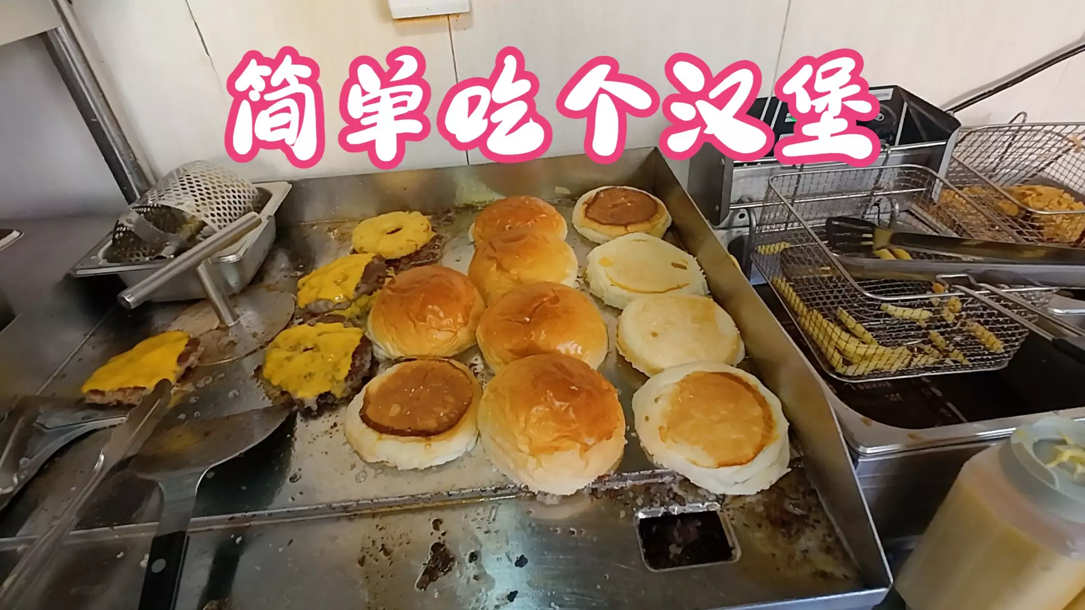 这是汉堡店忙碌的外卖制作打包现场,画面展示了汉堡制作的全过程,包括煎制肉饼、组装汉堡,还有打包外卖订单的场景,体现出汉堡店因外卖订单多而十分忙碌的状态。