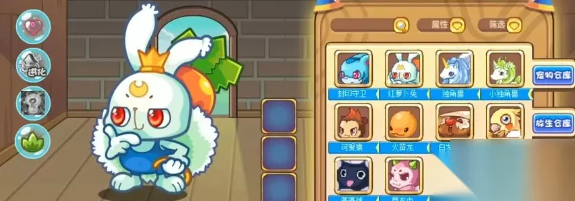首先玩家需要点击小的属性面板独角兽,然后选择独角兽进化,观察需要使用哪些游戏材料。目前独角兽的进化材料需要玩家在不同的小游戏中获取,玩家需要保证每次挑战小游戏都能顺利通关,这样才能在最后获得一些独角兽的进化材料。