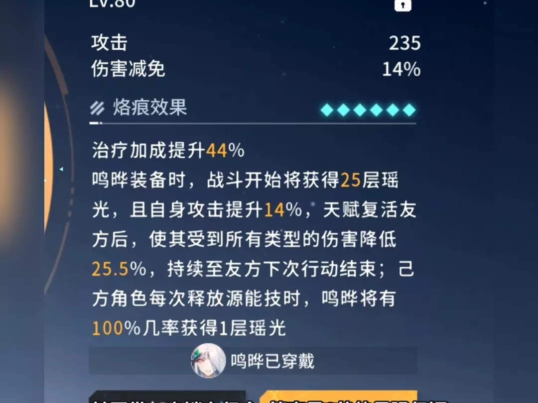 这是手游《锚点降临》中角色鸣晔的面板展示,包含其85级的属性总览、技能等级,还有穿戴的80级烙痕千岁和光的属性,以及鸣晔的升格效果等内容,官服可从TapTap下载。