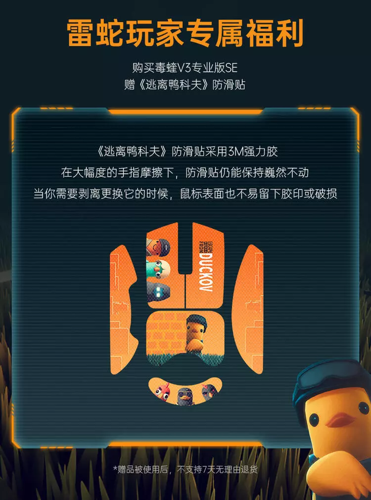 以下为雷蛇官方公布信息。【Razer雷蛇逃离鸭科夫限定版键盘 机械键盘】雷蛇黑寡妇蜘蛛V4竞技极速版【逃离鸭科夫限定版】官方售价:1499元【Razer雷蛇逃离鸭科夫限定版 键鼠 套装】官方售价:2299元【Razer雷蛇逃离鸭科夫限定版 毒蝰V3专业版SE】官方售价:809.1元("防滑贴"...)