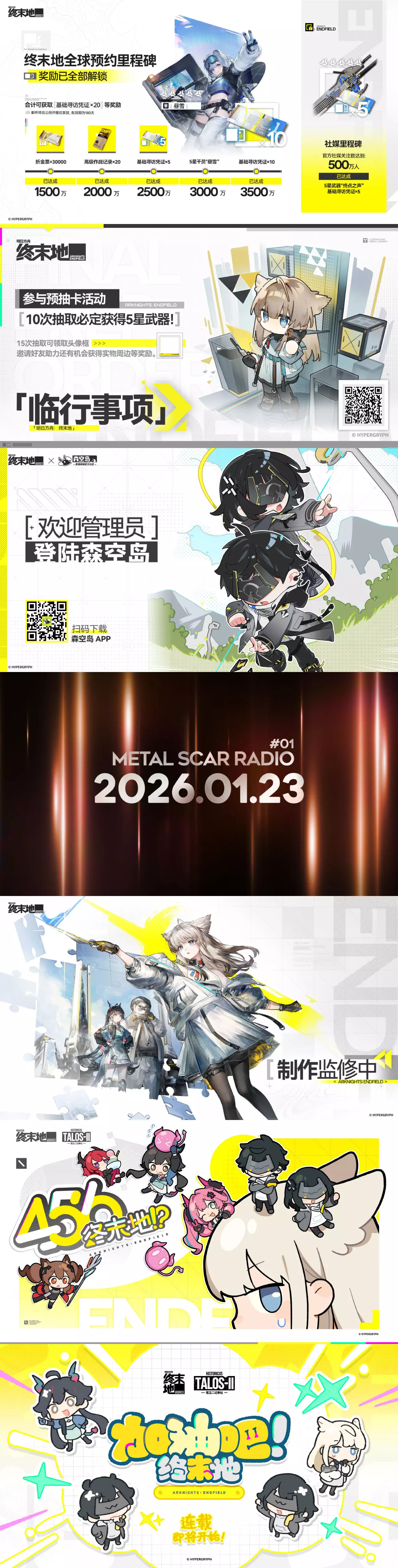 《明日方舟:终末地》公测前瞻最新情报现已公开!直播兑换码(公测上线后方可兑换):RETURNOFALLALLFIELD兑换码使用方法:游戏内【设置】界面选择【平台与账户】,在【礼包兑换】处输入使用。公测版本「零号委托」开启后,玩家可以通过各种活动累计获得:价值135次的寻访机会6星干员【艾尔黛拉】6星武器【沧溟星梦(施术单元)】6星武器自选箱【启程武器补给】6星武器自选箱【臻选武器补给】5星干员【昼雪】5星武器【终点之声(双手剑)】