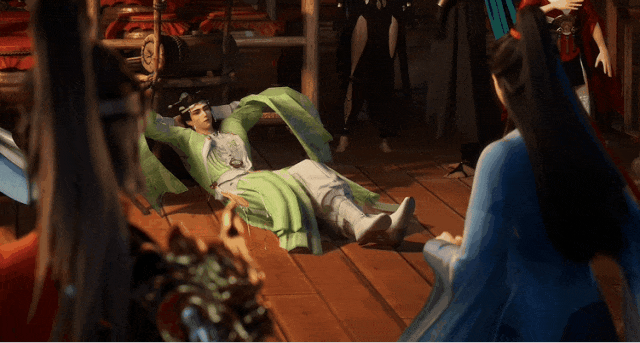 镜头给到舞池中央,一位少侠还在飞天舞宴中收到了财神爷的结交申请。只见对方开始向下仙少侠热心科普,还传递了一番新年发财秘诀......