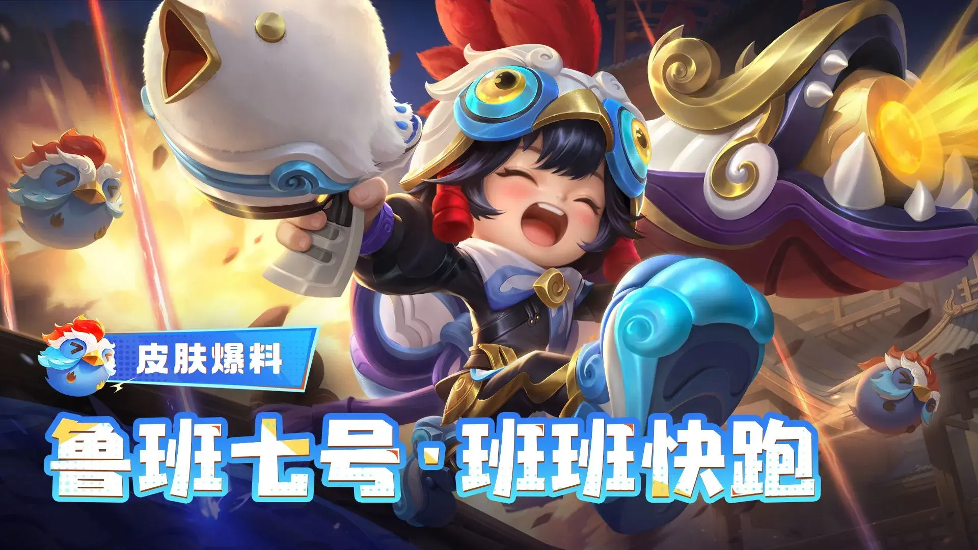 肤碎片兑换【鲁班七号-班班快跑】全新皮肤!这次小鲁班将化身小鸡侠客,搭配萌酷国风造型,在一片欢乐的爆炸声中奔向峡谷!一起来看看爆料吧~